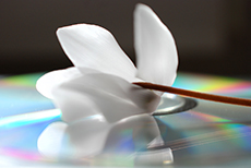 <しくらめん on CD>或る午後、デスク傍のCDにふと目が留まりました。虹色がきれいに輝いていました。ミニしくらめん花を1本摘み取って添えました。このシンプルな美しさに惹かれた時、「学んで確信したところにとどまっていなさい」というシンプルな聖句が浮かんできました。( 2016年11月撮影 )