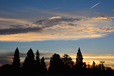 自宅から歩数分の大学グラウンドです。東雲のきれいな色彩に見とれていると、おりしも飛行機雲が走りました。(2020年9月撮影) ![]()