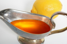 オーブンで焼いたミートローフの肉汁(gravy)を器に採ったら、オレンジ色のきれいな光を放ちました。この器から一匙とって、赤ワインやドミグラソースと一緒に一煮立ちさせると上からかける特製ソースになります。家庭で祝ったささやかなクリスマス用に焼いたものです。gravyは温度が下がると油脂分で白っぽく濁ってしまい、オーブンから出したてほやほやが一番きれいでした。(2020年12月撮影)