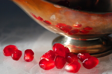 <ざくろ>灼熱の夏、「敵」のように思われた陽光が、肌寒い晩秋になると恋しい「友達」へ替わる実感があります。そんな秋の或る日、新鮮なざくろが手に入りました。丸のままや割った断面を色々撮影してみましたが、どうもしっくり来ません。最後に粒をばらして窓辺の明るい光の中に置くと、宝石のように輝き出しました。反射が 欲しくて小さな銀食器をいろいろな角度で置いてみて撮影したうちの一枚です。ざくろはその後スケッチも試みましたが、難しくて描ききれませんでした。