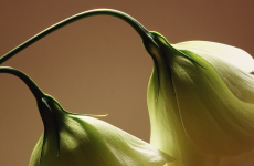 <トルコキキョウ>トルコキキョウの花は、正面からというよりむしろ、俯いた「肩」のあたりのつつましくしっとりとした美しさに惹かれます。窓辺の壁際にセッティングすると、ちょうどいい具合に光が差してくれて、撮影することができました。「あなたが心を定めて悟ろうとし、あなたの神の前でへりくだろうと決めたその初めの日から、あなたのことばは聞かれている」というダニエル書の聖句を思った時、自然にこの花の姿を思い出しました。( 2004年9月撮影 )